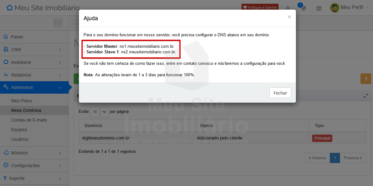 Meu Site Imobiliário - Inserindo um domínio - Tela 04